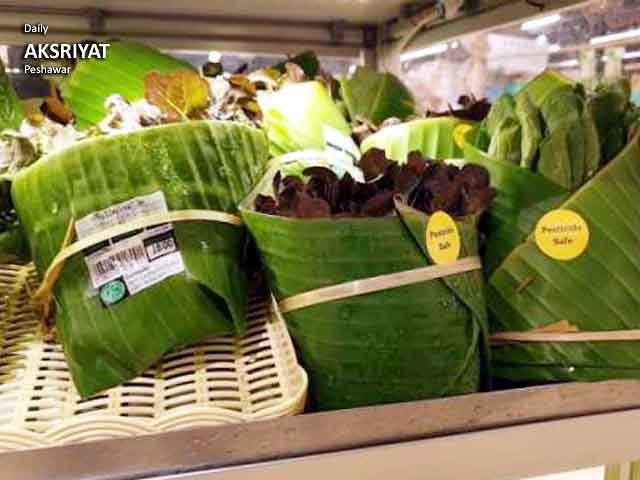 سپر مارکیٹ نے پلاسٹک پیکنگ کی بجائے کیلے کے پتے استعمال کرنا شروع کر دئیے
