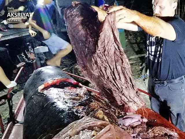 بھوک سے ہلاک ہونے والی وہیل کے پیٹ سے 40 کلو پلاسٹک برآمد