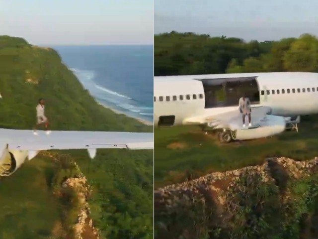 جہاز کے پرَ کے اوپر ماڈلنگ کرتے شخص کی ویڈیو وائرل