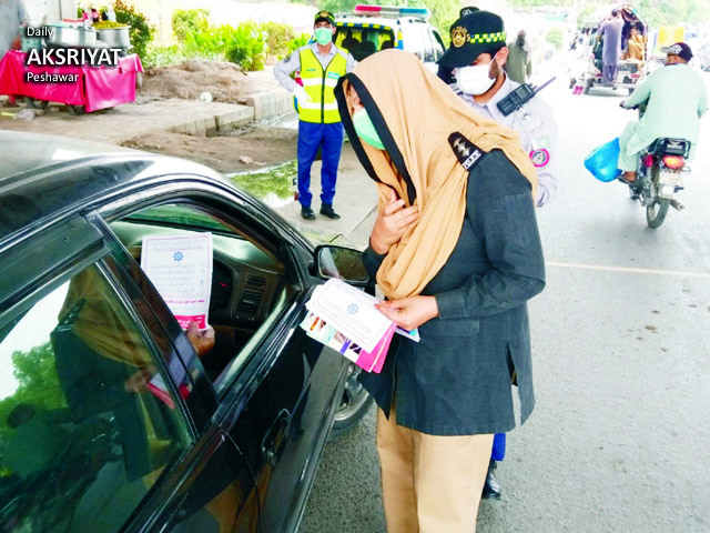 سٹی ٹریفک پولیس کی کورونا وائرس سے بچنے کیلئے شہریوں میں گلوز تقسیم