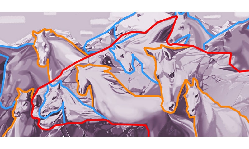 ویسے تو پہلی نظر میں ہی متعدد گھوڑے نظر آجاتے ہیں مگر اس تصویر میں کئی جگہوں پر گھوڑوں کو ہوشیاری سے چھپایا گیا ہے۔